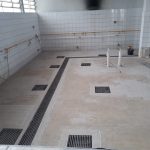 Durante as férias, período em que o preparo das refeições é menor, todo o piso da Cozinha Piloto foi substituído por um novo. A reforma serviu para adequar o sistema de drenagem e também trocar os ralos e grades. O investimento na obra foi de R$ 30.500,00, por meio de recursos próprios.
