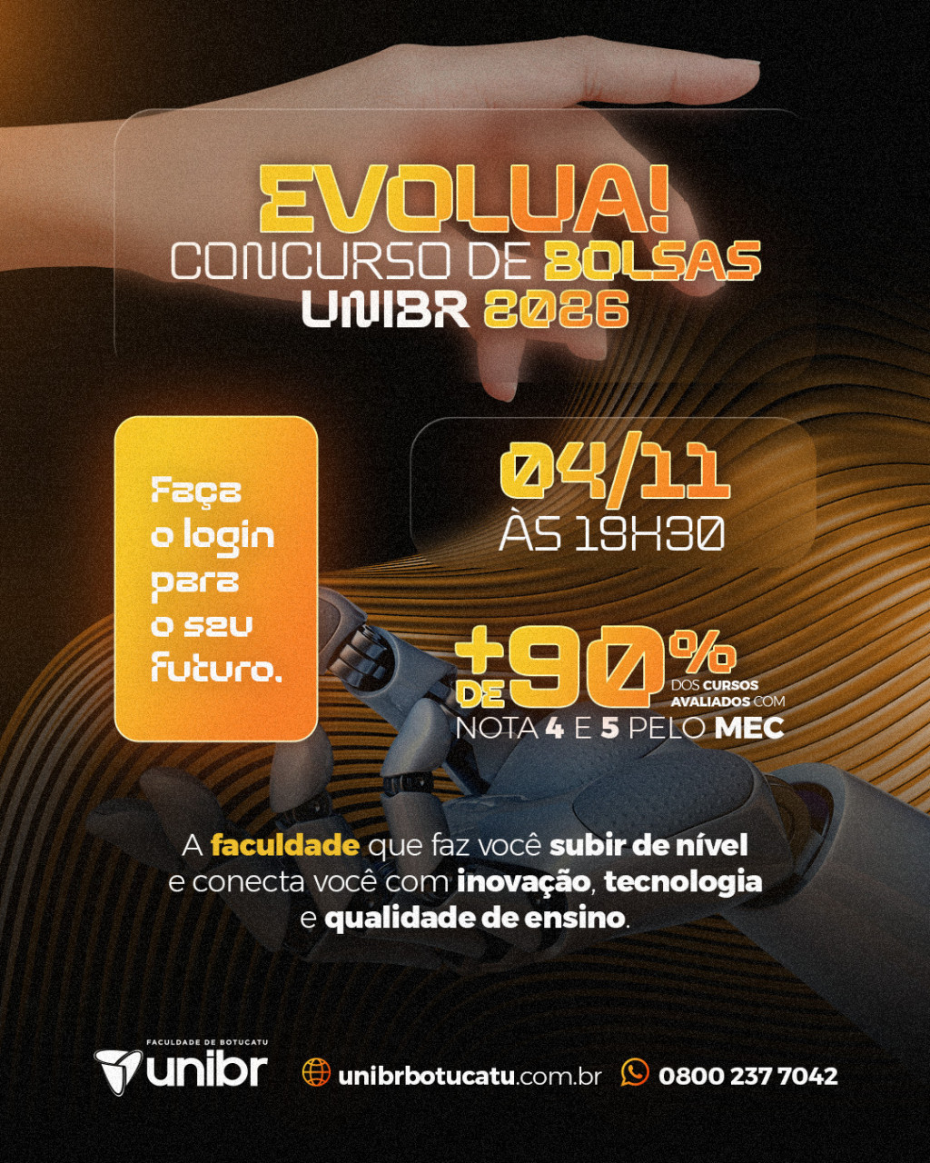 Com inscrições totalmente gratuitas pelo site www.unibrbotucatu.com.br, o concurso é uma excelente oportunidade para quem busca acesso à formação de qualidade e o preparo ideal para os desafios reais do mercado de trabalho.