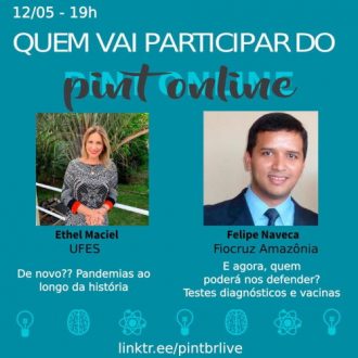 Festival mundial de divulgação científica, o Pint of Science adiou sua edição presencial para Setembro. No lugar das atividades que conjugam a informação das palestras científicas com a descontração dos bares que as hospedam, o festival está organizando uma versão online entre os dias 11 e 13 de maio, sempre às 19h. A professora Cintia Milagre, da Unesp no câmpus de Araraquara, participa do primeiro dia da atividade.
