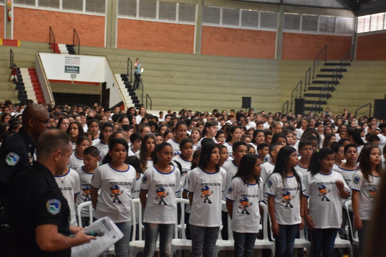 Na manhã desta terça-feira, 03, mais de 1.100 alunos da Rede Municipal de Ensino participaram da formatura do Programa Patrulha da Paz. A cerimônia foi realizada no ginásio da Associação Atlética Ferroviária e também contou com a presença de autoridades do Município e de diretores, professores e pais dos alunos.