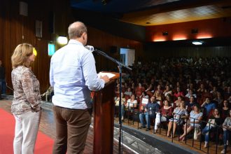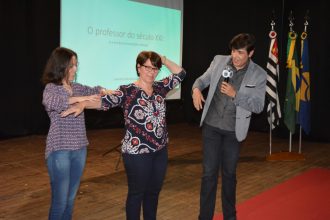No primeiro dia deste encontro, realizado no Cine Teatro Nelli, os professores e coordenadores pedagógicos do Ensino Fundamental I (1º ao 5º ano) e Educação Infantil, participaram de uma palestra com o Prof. Leandro Martins, da Editora Brasil Cultural. Nos dias 2 e 3, eles voltam a se reunir em suas escolas de atribuição para a discussão e elaboração do planejamento pedagógico.