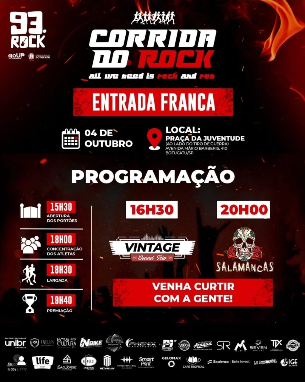 Neste sábado, 4 de outubro, Botucatu recebe a segunda edição da Corrida do Rock, mas quem não se inscreveu para a prova também poderá participar da programação. A Praça da Juventude será palco da Festa da Corrida do Rock, evento gratuito e aberto ao público.