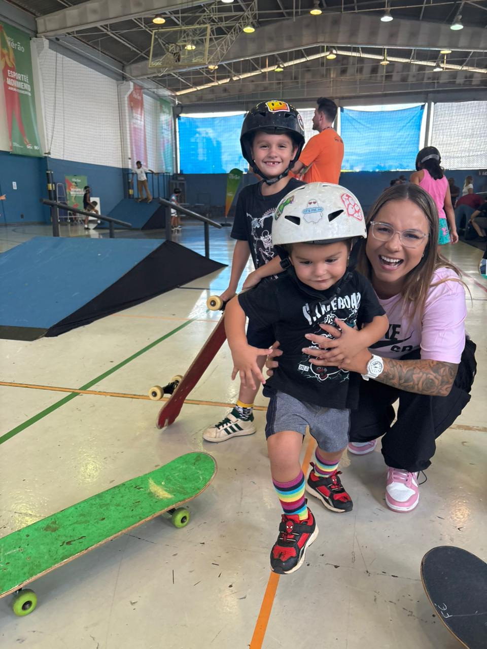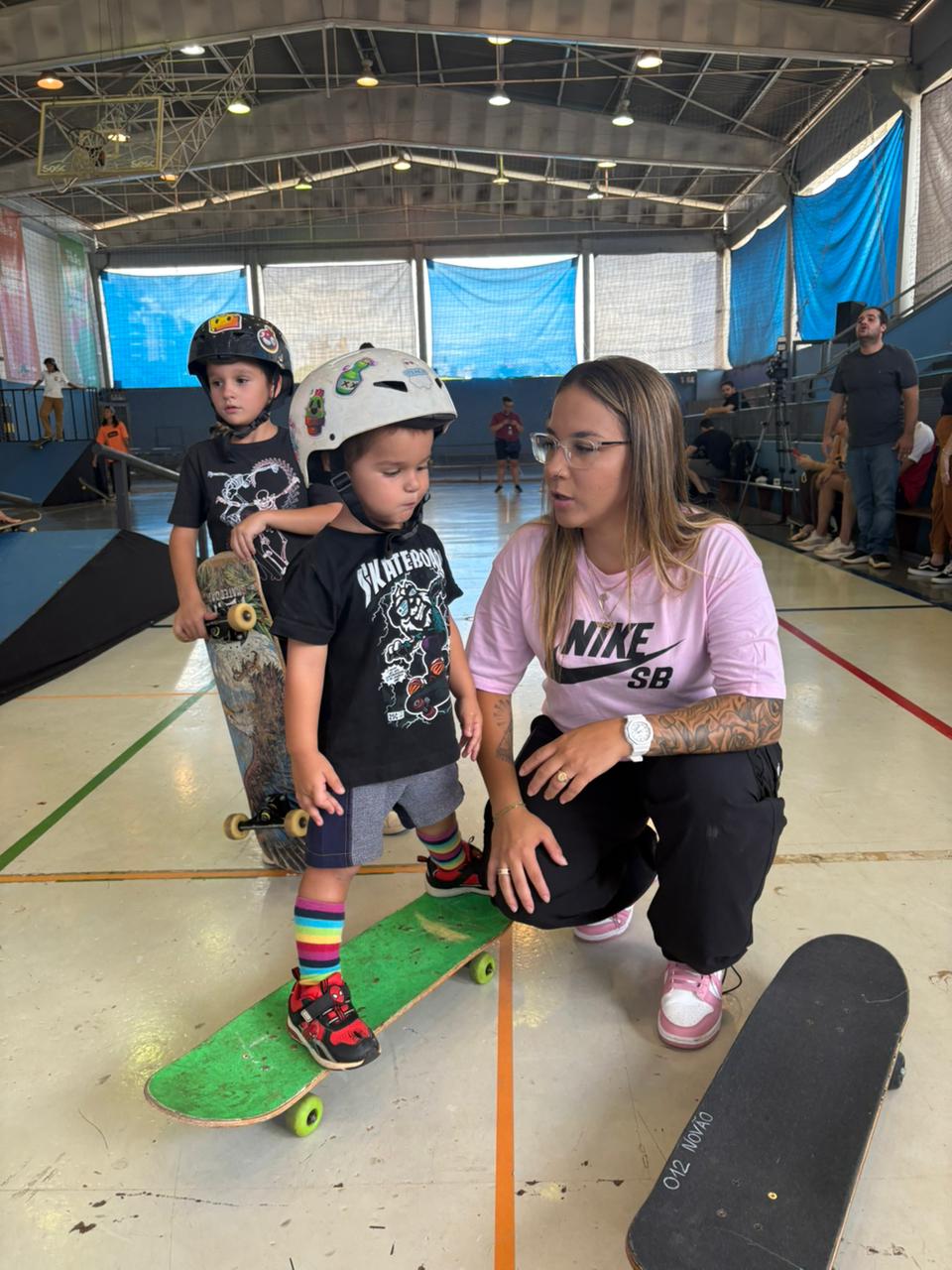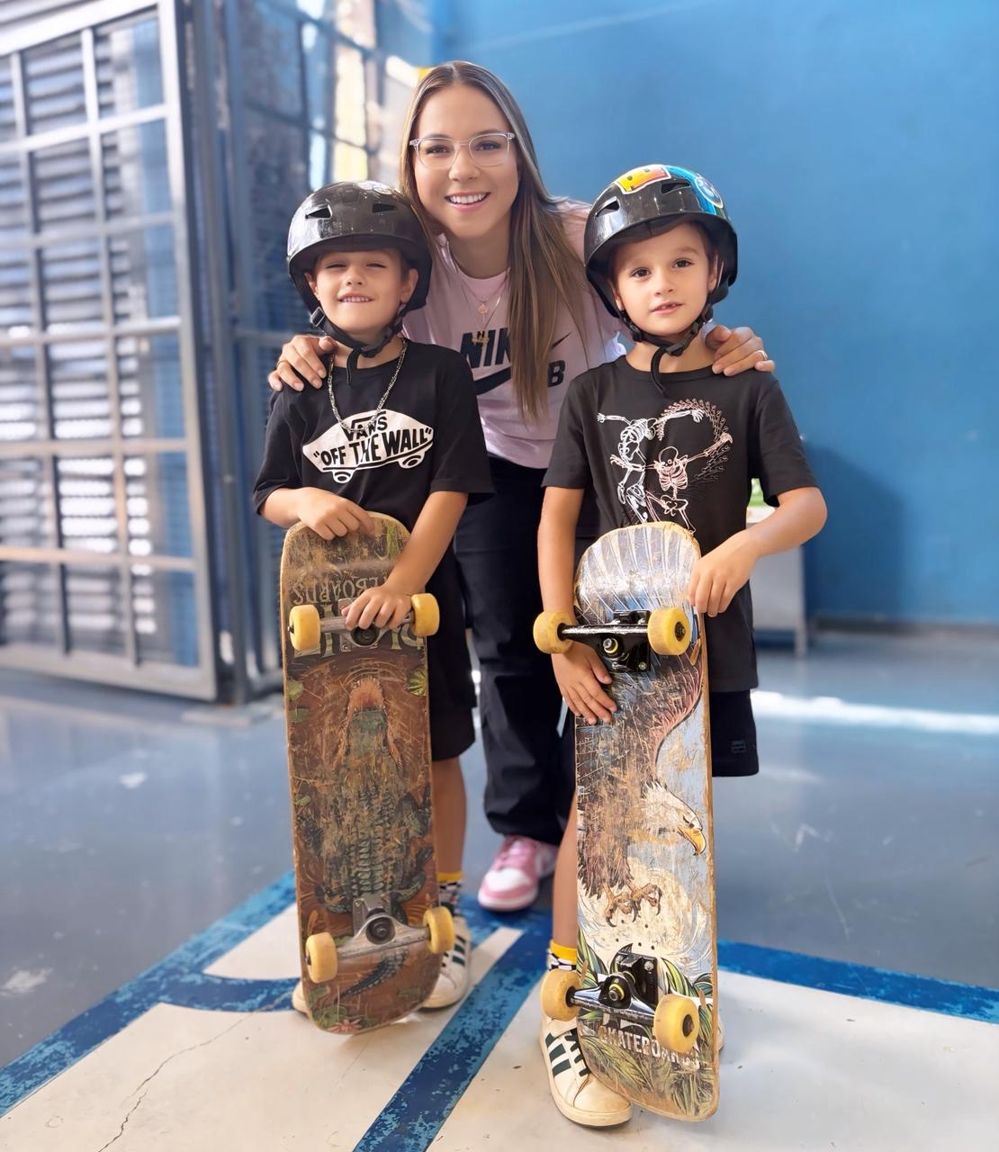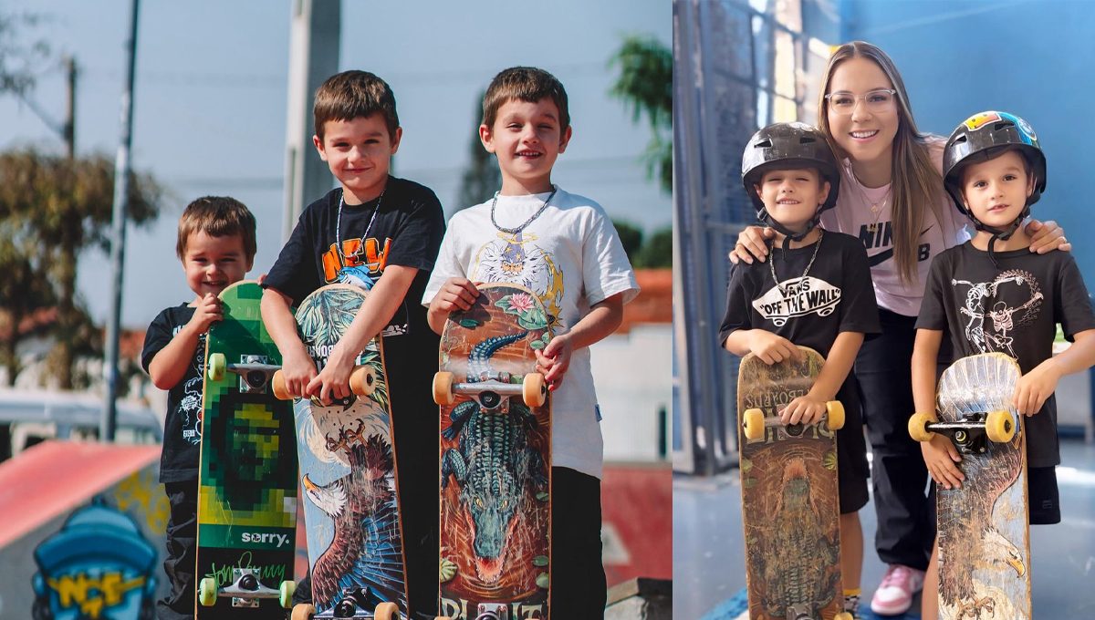 Neste final de semana, os irmãos viveram um momento especial ao lado da bicampeã mundial de skate, Pamela Rosa. Juntos, andaram de skate e aproveitaram um dia intenso em Ribeirão Preto, experiência que também resultou na gravação de uma matéria para o Globo Esporte, ampliando ainda mais a visibilidade dos jovens atletas.
