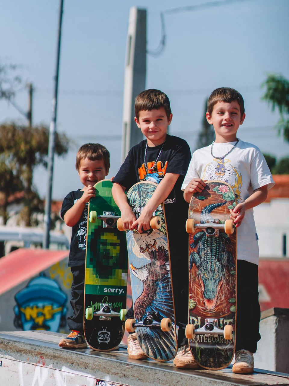 Mesmo tão novos, Henrique, Guilherme e Giuseppe demonstram evolução constante, equilíbrio e confiança, executando manobras que impressionam para a idade. O skate faz parte da rotina da família e vem sendo trabalhado com disciplina, diversão e muito comprometimento.