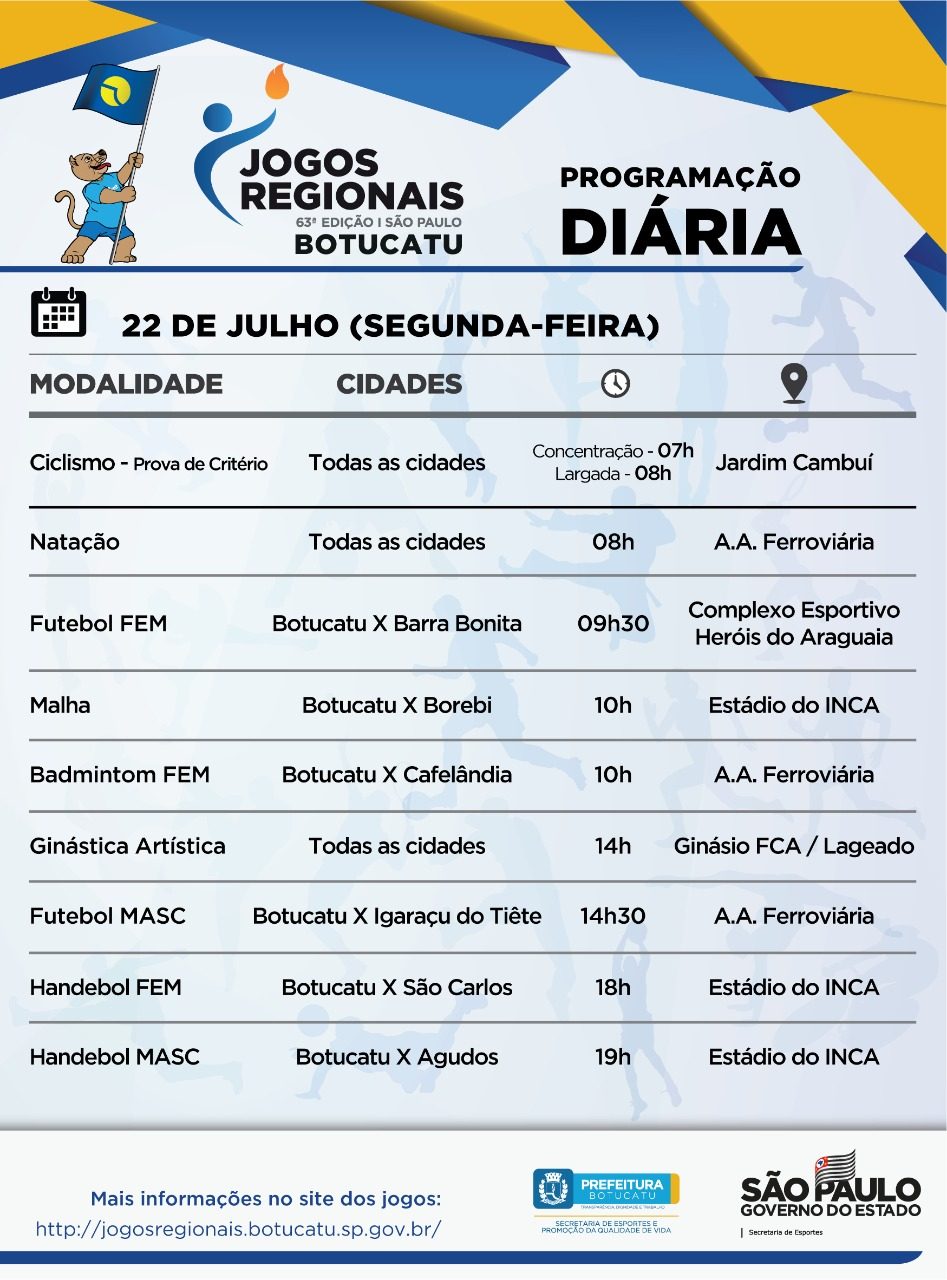 Os Jogos Regionais em Botucatu serão realizados até o dia 27 de julho.