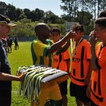 As duas equipes receberam troféus e medalhas das mãos dos jogadores da Seleção Brasileira Master.