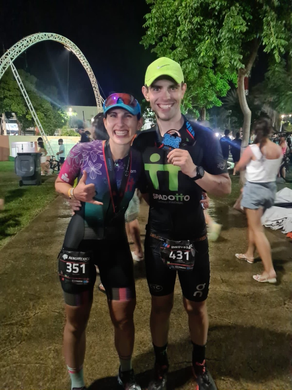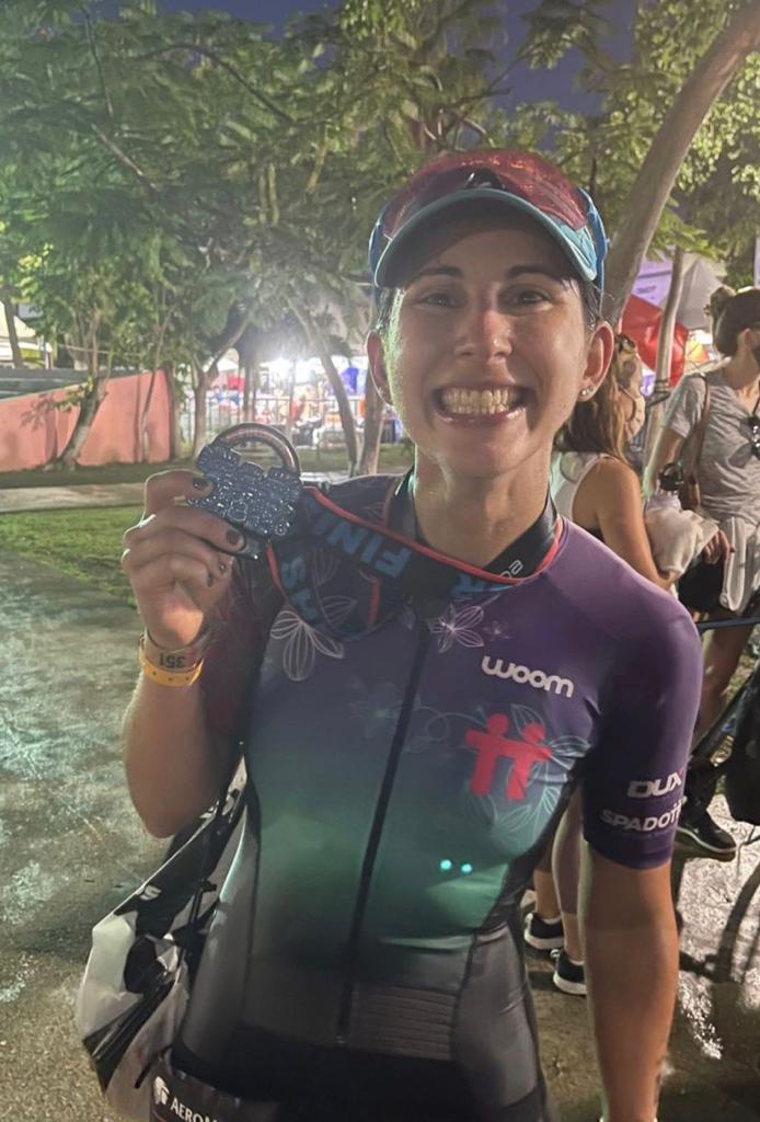 “Nós estávamos inscritos no IRONMAN BRASIL desde 2019, mas com a pandemia a prova foi adiada diversas vezes. Continuei treinando, mesmo nos períodos críticos da pandemia, aluguei uma esteira e mantive os treinos de corrida e ciclismo em casa. Foram muitas horas de treinos “indoor”, sendo que a piscina fechou por alguns meses, fiquei sem nadar, mas nunca desanimei. Sempre busquei um plano B e sempre que liberava a piscina eu tentava recuperar o que perdi. Faltando 10 semanas, o ironman Brasil foi adiado para 2022, então meu treinador sugeriu ir para o México. Não foi uma decisão fácil, confesso que foi uma loucura, toda logística, mudanças nos treinos, aclimatação, mas valeu a pena cada segundo”, disse Tatiana.