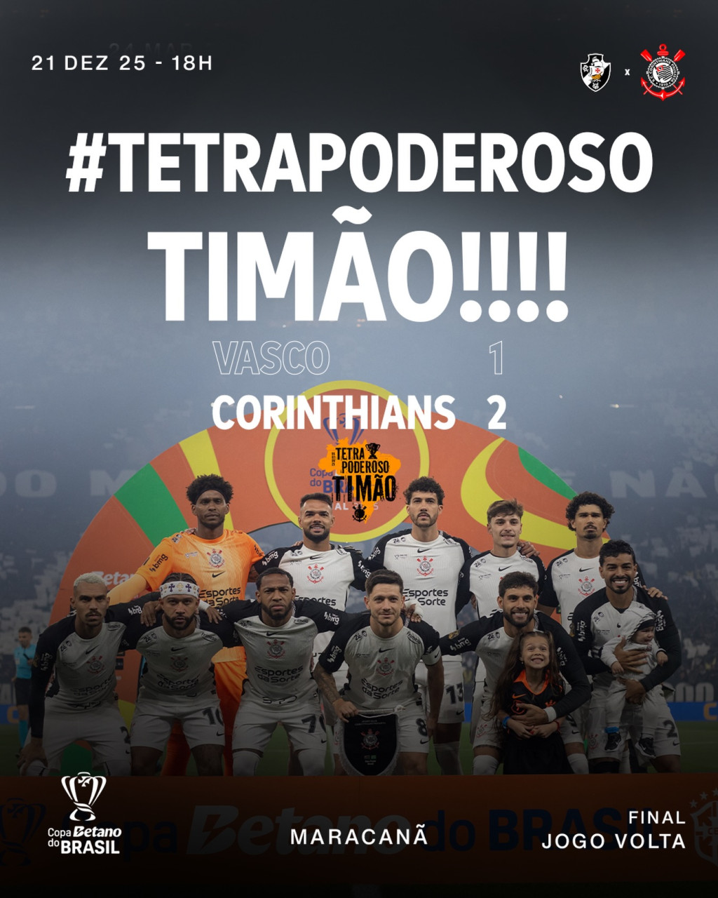 Após 16 anos de espera, o Corinthians pode, enfim, gritar “campeão” da Copa do Brasil. O título da temporada 2025 veio neste domingo (21) após vitória por 2 a 1 sobre o Vasco em um Maracanã com mais de 67 mil torcedores.