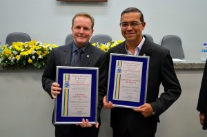 A Câmara Municipal de Botucatu sediou na sexta-feira, 03, uma Sessão Solene bastante especial, onde foram homenageados dois importantes párocos da Arquidiocese botucatuense. Por conta de dois Decretos Legislativos apresentados pelo vereador João Elias [SD], os cônegos, Emerson Rogério Anizi e Joinville Antônio de Arruda receberam o título de “Cidadão Botucatuense”.