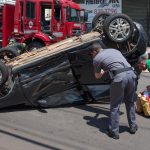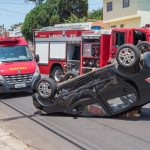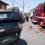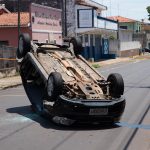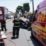 Um GM Agile Preto, conduzido por uma mulher de 32 anos, estava pela Rua Curuzu, quando foi fechada por uma Renalt Scenic preta, conduzido por um homem de 37 anos. Com a colisão, o Agile capotou e ficou com as rodas para cima.