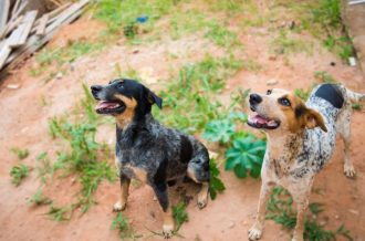 O Bernardo estava com uma bicheira muito grande na região da orelha, sentia muita dor, além de estar muito anêmico. Já a Bianca estava com doença do carrapato, com TVT (tumor venéreo transmissível) e prenha de 8 filhotinhos, mas através de um ultrassom constatou-se que todos já estavam mortos.