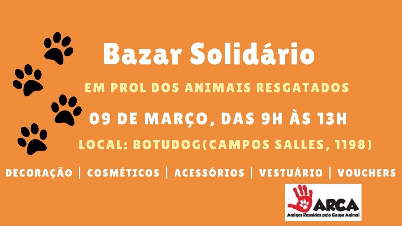 A ARCA (Amigos Reunidos pela Causa Animal) de Botucatu fará um bazar beneficente em prol dos animais resgatados em Botucatu. Será no dia 09 de março, um sábado, das 9h00 às 13h00, na Botudog (Rua Campos Salles 1198).