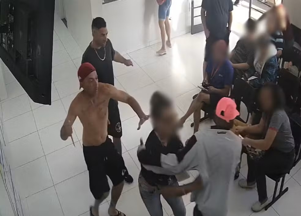 Imagens de câmeras de segurança registraram o momento em que os suspeitos entram no local e partem para cima do homem no saguão de espera. Um deles utilizava uma faca e chegou a desferir golpes, mas a vítima conseguiu escapar sem ser atingida.