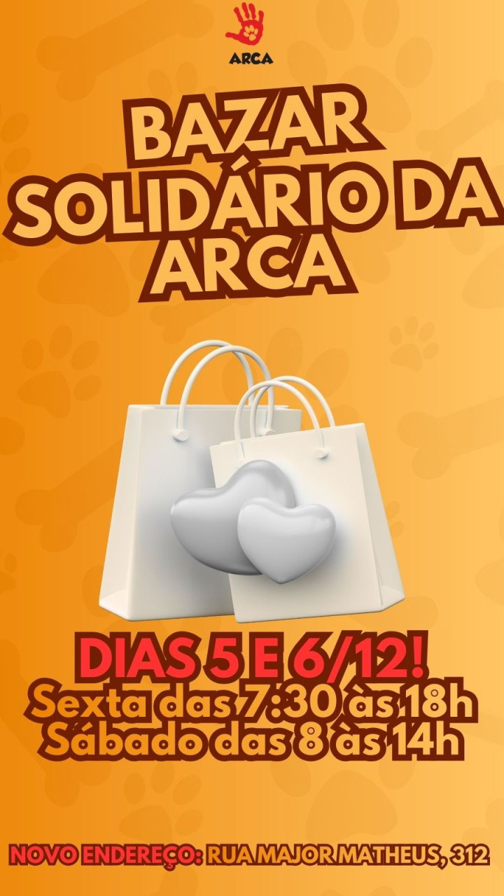 A ARCA informou que o bazar será realizado em novo endereço: Rua Major Matheus, 312, facilitando o acesso do público e apoiadores.