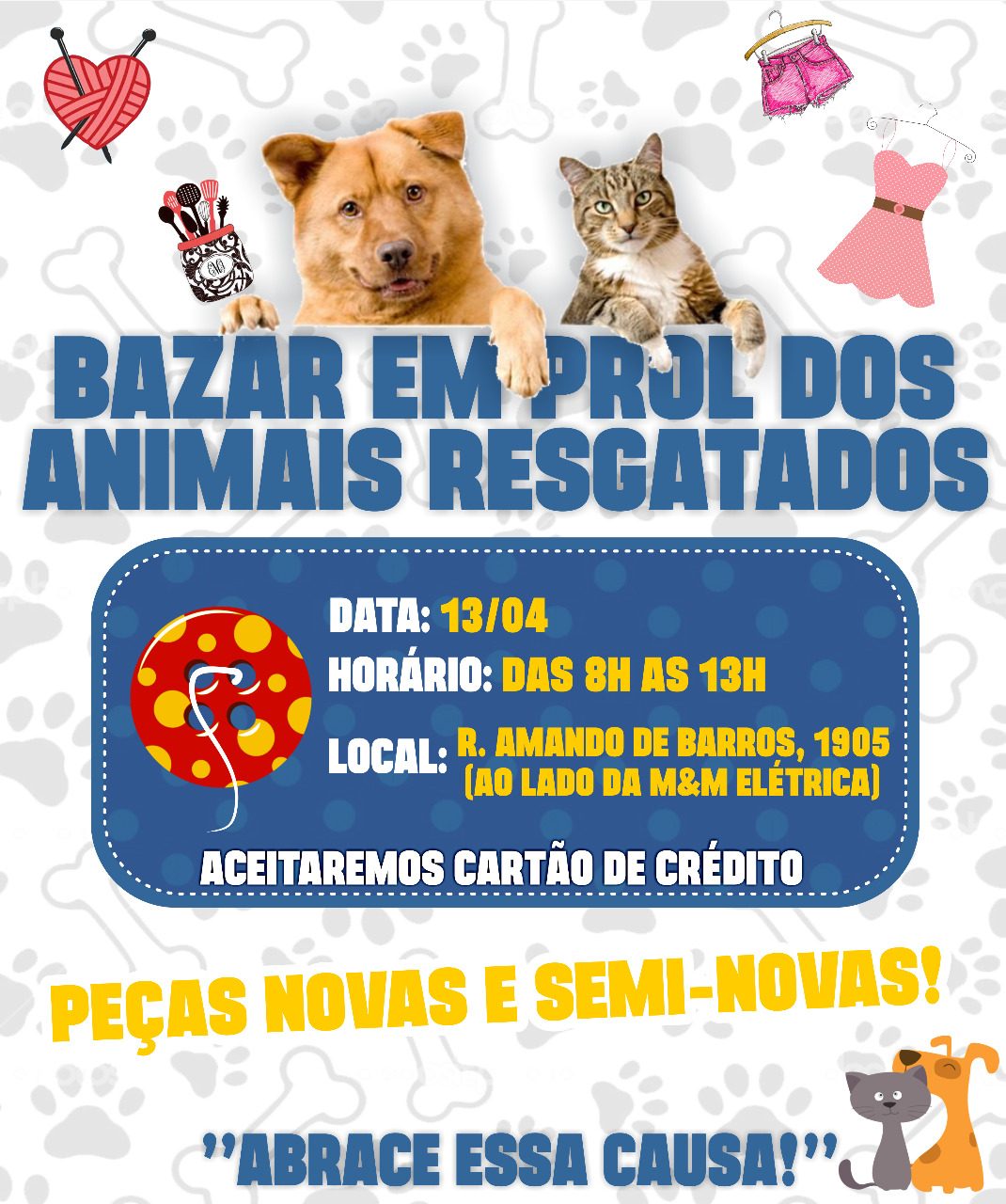 No dia 13 de abril, um sábado, será realizado mais um bazar em prol dos animais resgatados em Botucatu. O local do evento desta vez será na Rua Amando de Barros, número 1905, ao lado da M&M Elétrica.