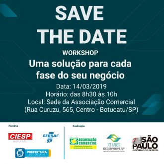 No próximo dia 14 de março, a Agência de Desenvolvimento do Governo de São Paulo, em parceria com a Associação Comercial e Empresarial de Botucatu (ACEB), Ciesp Botucatu, Sebrae e Secretaria Municipal de Desenvolvimento Econômico de Botucatu, promoverá o workshop “Uma solução para cada fase do seu negócio”. O objetivo do evento, que ocorrerá das 8h30 às 16 horas na sede da Associação Comercial e Empresarial de Botucatu, é continuar incentivando as Pequenas e Médias Empresas (PMEs) a investirem na produtividade e competitividade de seus negócios.