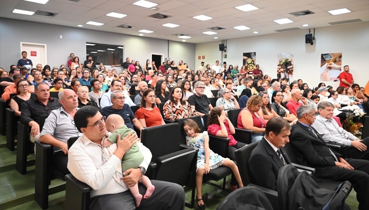 Sessão Solene reconheceu docentes, gestores, alunos e escolas das redes Municipal e Estadual no Auditório do SENAI.