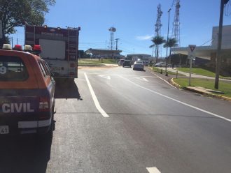 Corpo de Bombeiros e Defesa Civil atenderam neste sábado, dia 20, uma ocorrência de vazamento de óleo de um caminhão em via pública.