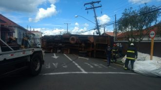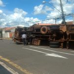 Motoristas relatam lentidão nessa região. A Bráz de Assis está interditada neste momento e a Polícia Militar faz a sinalização do local. O caminhão estava carregado com papel e plástico e pertence a uma empresa de recicláveis em Botucatu. (Fotos colaborador Acontece Botucatu)