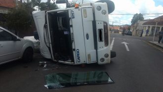 Um caminhão tombou na tarde desta quarta-feira, dia 21, entre as Ruas Bráz de Assis e Jaguaribe, na Vila dos Lavradores. Segundo informações colhidas no local, o motorista perdeu o freio, vindo a tombar na via. Por sorte não há feridos no local.