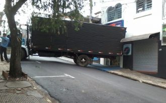 Registro do internauta: No início da noite desta sexta-feira, um caminhão que estava estacionado pela rua Velho Cardoso, região central de Botucatu, perdeu o freio, vindo a descer e acertar a fachada de uma loja. Por sorte não houve vítimas, apenas danos matérias. As fotos foram enviadas pelo internauta Mário Bruder.