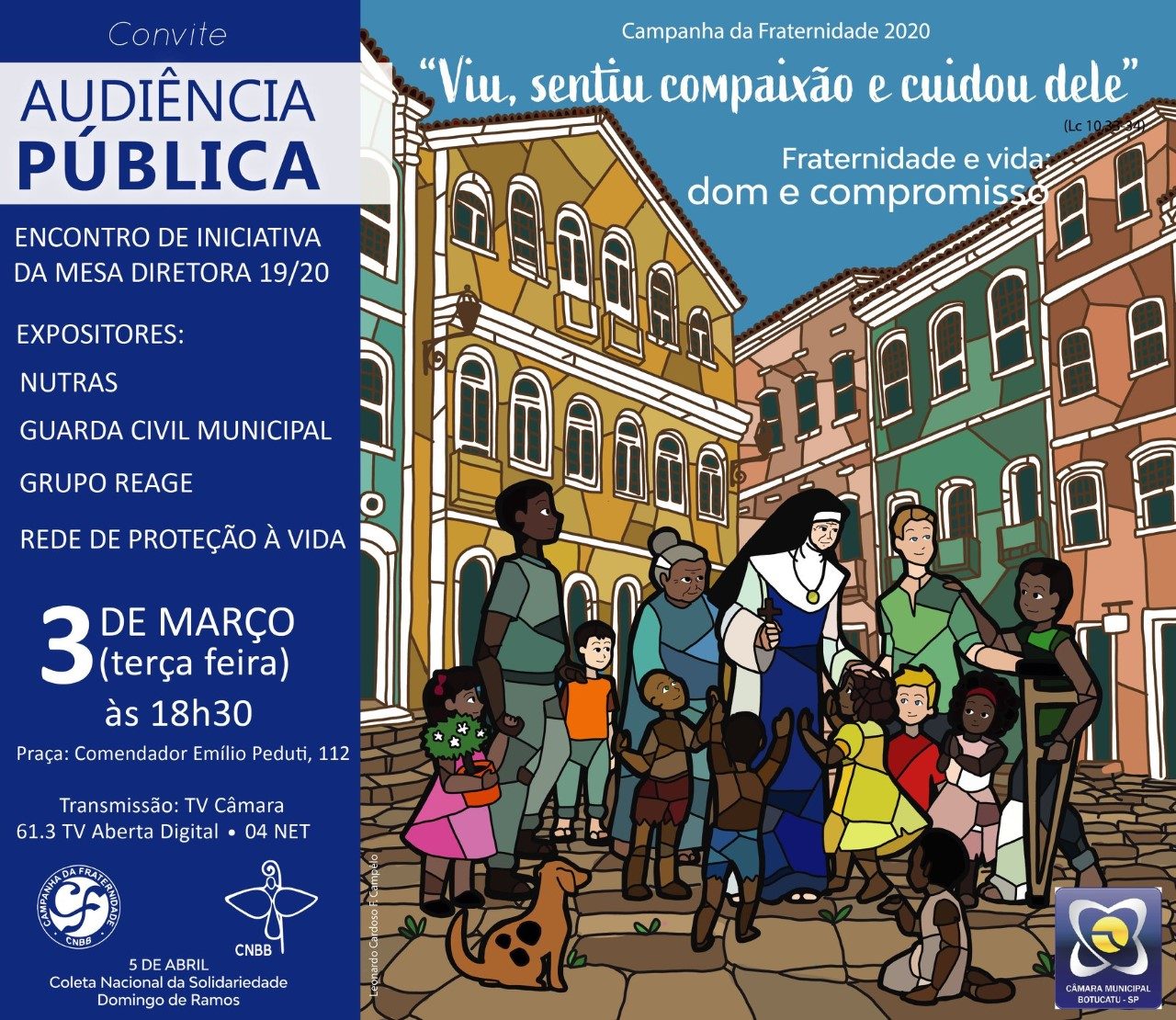 A audiência será no dia 03 de março, das 18h30 às 20h30, na Câmara Municipal de Botucatu, maiores informações com Patrícia Shimabuku (14 9 96193050). (CONVITE ANEXO)