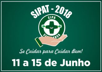 “Se cuidar para cuidar bem”: é com este tema que será realizada, a partir da próxima segunda-feira, 11, a Semana Interna de Prevenção de Acidentes do Trabalho (SIPAT) 2018. O evento será realizado durante toda a semana (de 11 a 15 de junho), com palestras realizadas no Salão Nobre da FMB e apresentações culturais no Boulevard do Hospital das Clínicas da Faculdade de Medicina de Botucatu (HCFMB), além do sorteio de diversos brindes.
