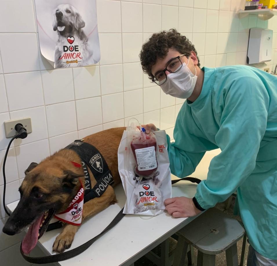 Sensibilizada com a situação, a Polícia Militar de Botucatu levo um de seus cães do Canil Setorial para realizar a doação. Tranquilo e muito dócil, Kito fez sua parte e ajudou a salvar a vida de outros cães.