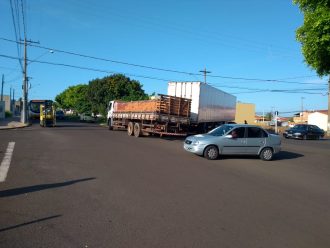 Motoristas na região do Jardim Itamaraty tomaram um susto na manhã desta sexta-feira, dia 23. Um caminhão Mercedes Benz, com placas de Toledo-PR, tentou uma conversação no cruzamento das vias avenida João Batista Carnieto e rua Pedro Pimentel, quando sofreu um incidente.