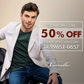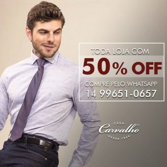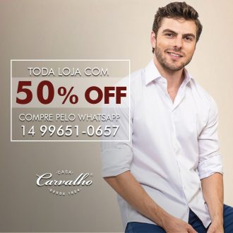 A qualidade dos produtos da Casa Carvalho que você já conhece com 50% de desconto. É isso mesmo, as melhores marcas em roupas e acessórios com 50% de desconto.