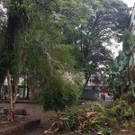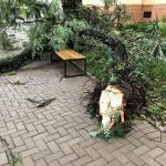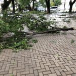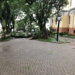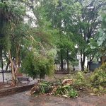 Na chamada Praça do Bosque, ponto de passagem de quem está no comércio, muitos galhos e até árvores foram arrancadas. O Acontece acompanha.