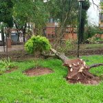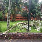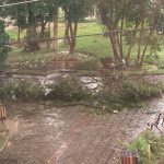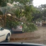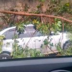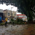 Uma árvore caiu sobre a fiação no Recanto Azul, enquanto galhos ficaram pendurados na rede elétrica em várias partes da cidade, interrompendo a energia em muitos bairros.