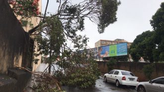 Uma árvore caiu sobre a fiação no Recanto Azul, enquanto galhos ficaram pendurados na rede elétrica em várias partes da cidade, interrompendo a energia em muitos bairros.