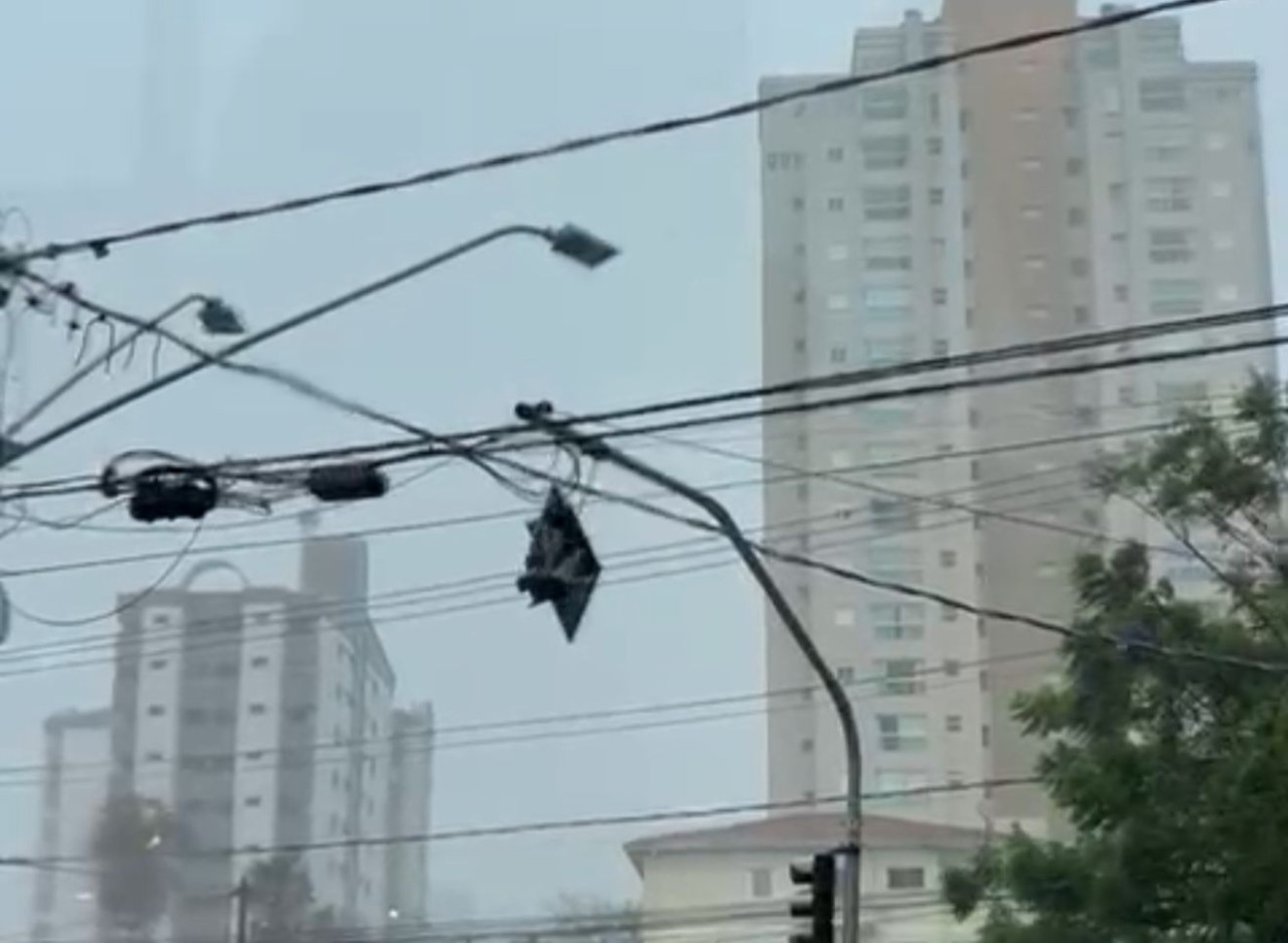O vento derrubou um semáforo na Avenida Vital Brasil, que ficou pendurado após a estrutura ceder. Equipes de trânsito foram acionadas para isolar a área e evitar acidentes.