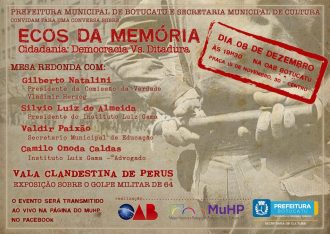 A atividade faz parte do projeto “Ecos da Memória” do MuHP. Participarão da mesa redonda Gilberto Natalini, Presidente da Comissão da Verdade em São Paulo; Silvio Almeida, jurista, professor e Presidente do Instituto Luiz Gama; Camilo Onoda Caldas, advogado do Instutito Luiz Gama; e Valdir Paixão, Secretário Municipal de Educação de Botucatu.