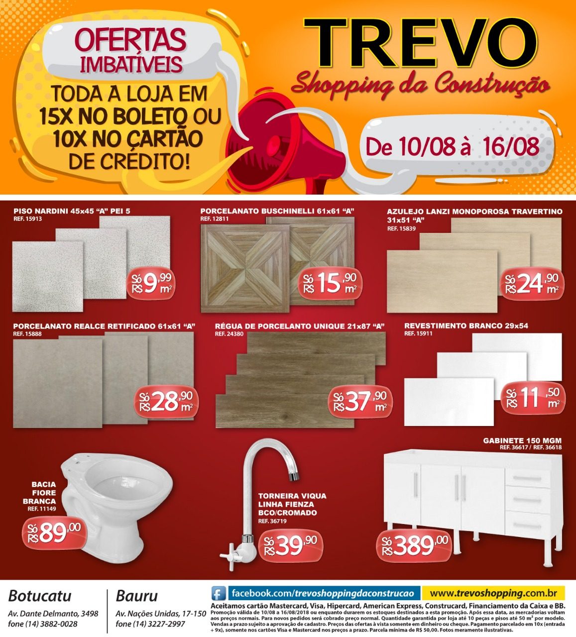 ⚠️Não perca ofertas espetaculares da Trevo Shopping da Construção até 16/08. Toda loja em 15x no boleto ou em 10 x no cartão; confira!