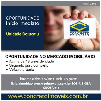 ⚠️OPORTUNIDADE IMEDIATA DE TRABALHO na Concreto Imóveis Botucatu; confira!!!