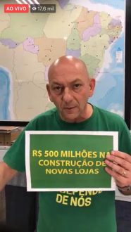 Luciano Hang causou polêmica durante a campanha eleitoral, ao afirmar que congelaria os investimentos no país em caso de vitória de Fernando Haddad do PT. O empresário citou que após a vitória de Bolsonaro, a live era para anunciar os investimentos e a criação de 5 mil novos empregos.