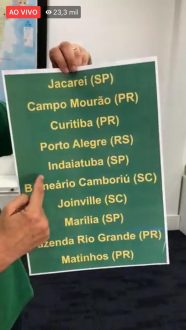 Mogi Mirim (SP), Florianópolis (SC), Palhoça (SC), Paranavaí (PR), Setãozinho (SP), Votuporanga (SP), Campinas (SP), Jacareí (SP), Campo Mourão (PR), Curitiba (PR), Porto Alegre (RS), Indaiatuba (SP), Balneário Camboriú (SC), Joinville (SC), Marília (SP), Fazenda Rio Grande (PR) e Matinhos (PR) foram as cidades anunciadas via Facebook.