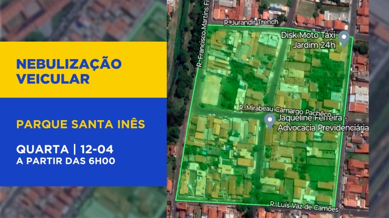 Nesta quarta-feira, 12, a Vigilância Ambiental em Saúde (VAS) fará a pulverização de larvicida biológico nos quarteirões onde se concentram casos de dengue autóctones (contraídos no município), no Comerciários 4 e Parque Santa Inês.