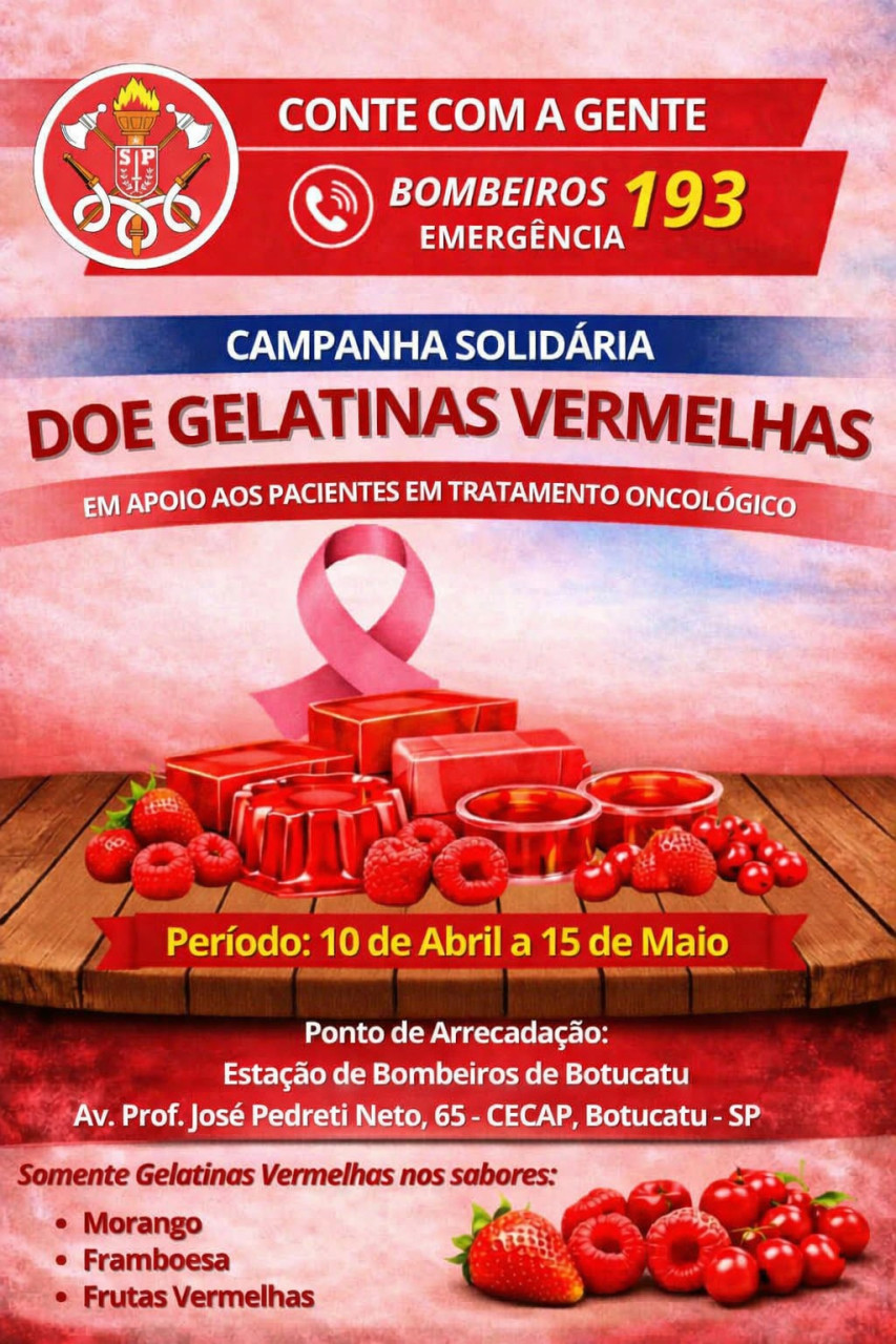 O Corpo de Bombeiros de Botucatu está promovendo uma campanha solidária para arrecadação de gelatinas, que serão destinadas a pacientes em tratamento oncológico no município.