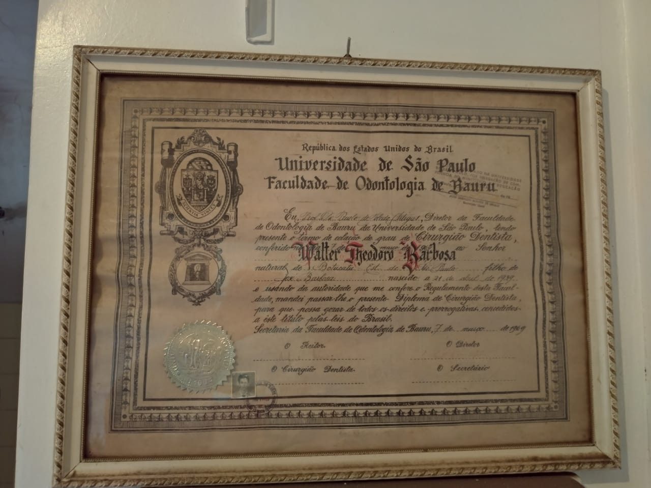 Barbosa foi da segunda ou terceira turma da FOB, Faculdade de Odontologia de Bauru, da USP. “Começamos em 1965, terminamos o curso em 1968 e a colação de grau foi no começo de 1969”.