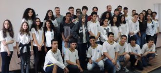 No evento, o Secretário Valdir Paixão e o Prefeito Mario Pardini homenagearam os 40 alunos da Rede Municipal de Ensino, aprovados no Vestibulinho do Colégio Embraer “Casimiro Montenegro Filho”.