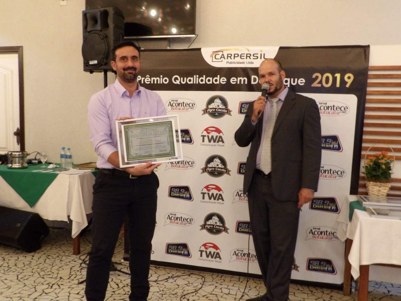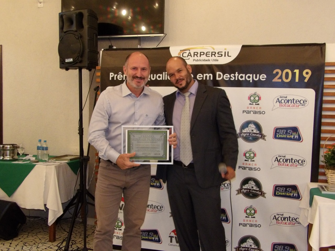 Empresários de Botucatu estiveram reunidos na noite do dia 11 (quinta-feira), em um jantar na Churrascaria Tabajara para a entrega dos certificados “Qualidade em Destaque – Edição 2019”. O prêmio foi outorgado às empresas que se destacaram em seu ramo de atividade. A promoção é da empresa Carpersil, que há mais de 14 anos atua no mercado publicitário em diferentes cidades do interior paulista.