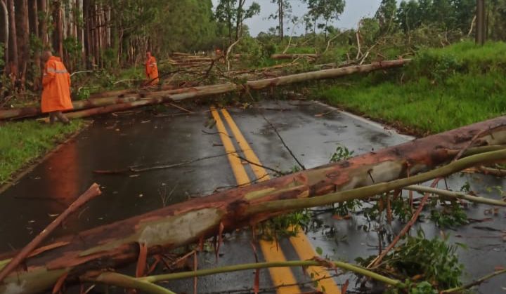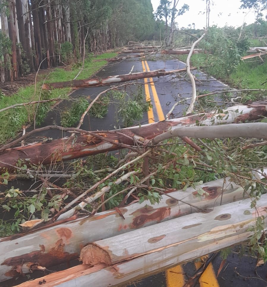 A estrada foi bloquedada para remoção das árvores. A ocorrência foi registrada como apoio e encaminhada pelo Centro de Operações Integradas.
