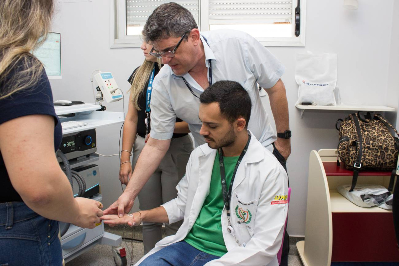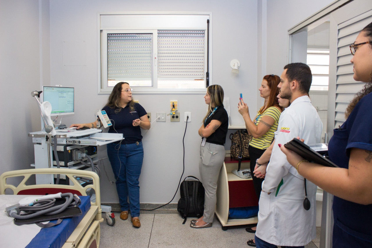 O treinamento reuniu a doutoranda e fisioterapeuta Luana Aparecida Miranda, responsável pela execução do protocolo, fisioterapeutas da equipe e profissionais envolvidos na aplicação das técnicas de estimulação. A atividade teve como foco padronizar procedimentos, testar configurações do equipamento e alinhar a condução das intervenções que serão aplicadas nos pacientes que começam a ser recrutados.