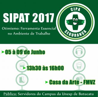 A Sipat 2017 é realizada por todas as Comissões Internas de Prevenção de Acidentes (CIPAS) das unidades do câmpus de Botucatu (Rubião Júnior) em parceria com os Serviços Especializados em Engenharia de Segurança e Medicina do Trabalho (SESMTs) do HCFMB e da Famesp.
