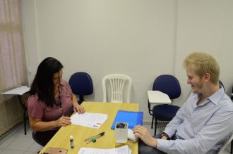 Guilherme Frederico Ferro Alves, 25 anos, de Capivari, São Paulo, foi um dos médicos que realizou sua matrícula na manhã do dia 8. Ele fará sua especialização em cirurgia geral e pretende atuar na área de cirurgia plástica. Guilherme comenta o porque da escolha da FMB: “Primeiro, eu queria experimentar uma faculdade que fosse diferente da que eu fiz, conhecer um jeito novo de pensar e, segundo, pelas referências que eu tive, tanto na área da plástica quantas das outras especialidades daqui”.