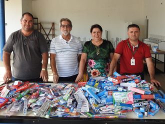 Compostos por escova e creme dental, os kits foram arrecadados entre a comunidade universitária como contribuição para inscrição da festa de confraternização de final de ano da FMVZ. Os kits foram recebidos pelo senhor Antonio Marcolino, diretor financeiro do projeto.