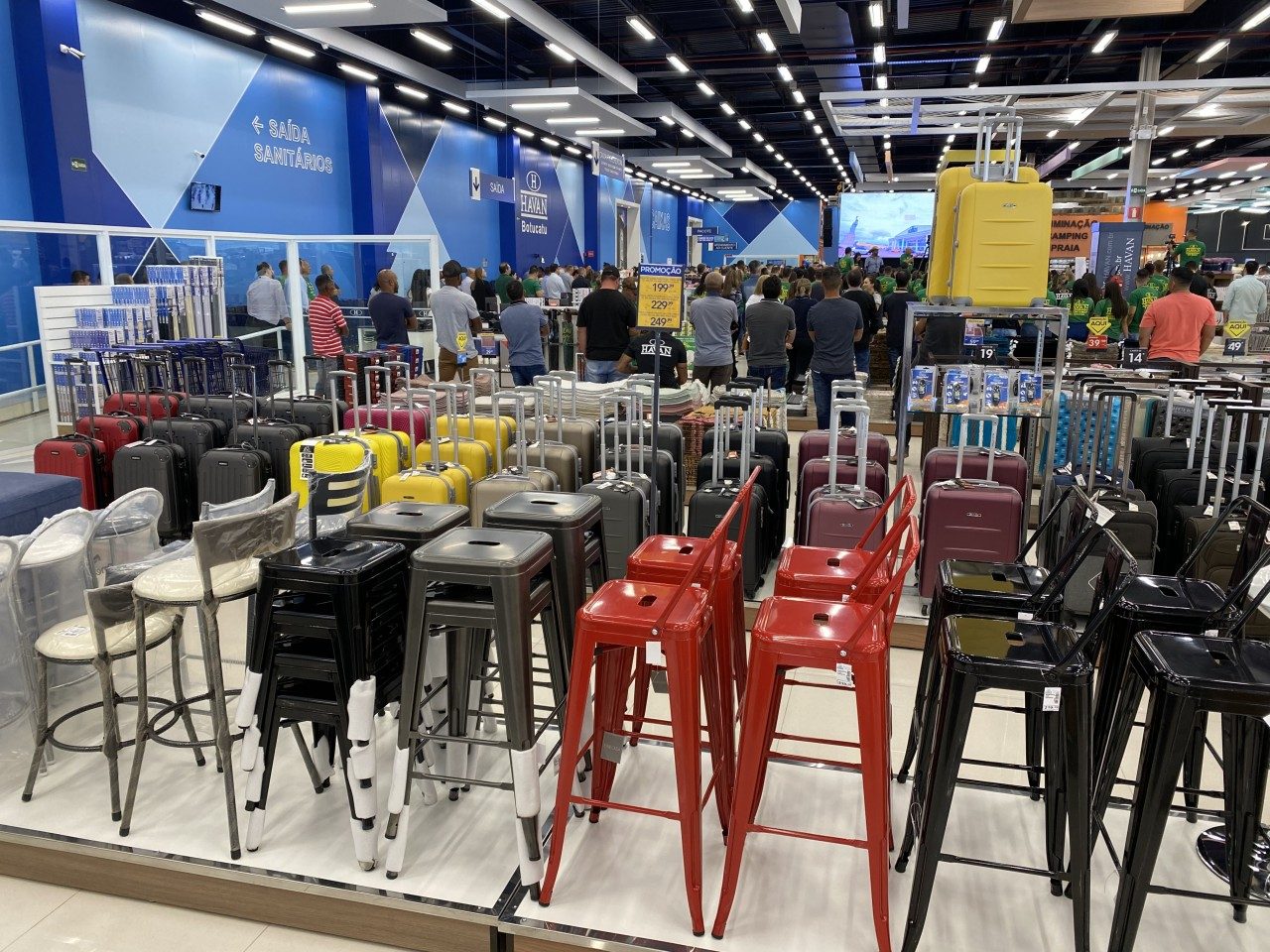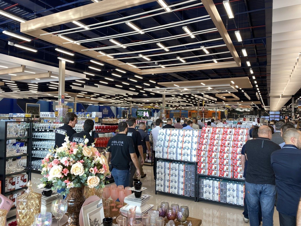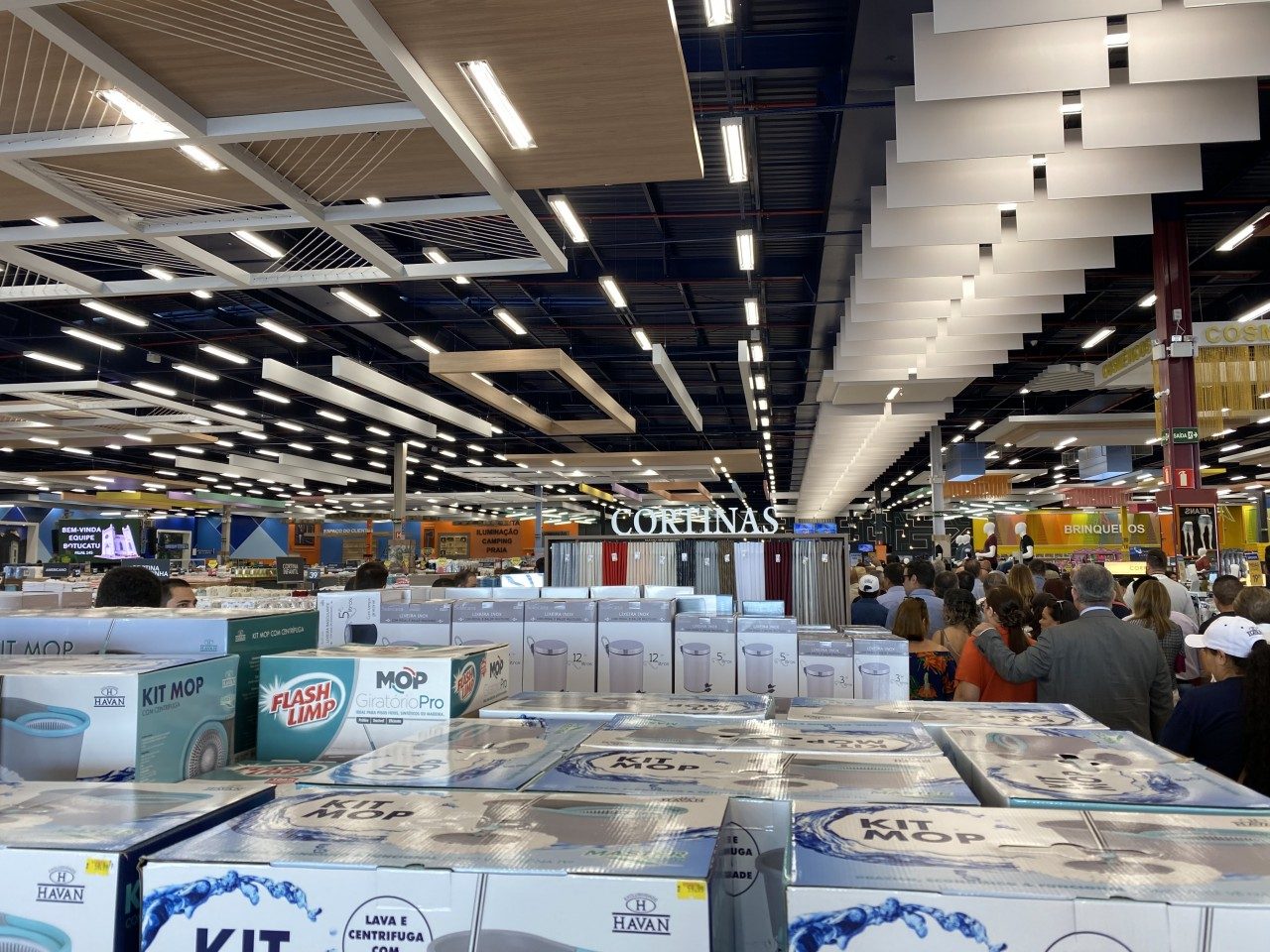 As portas abriram para público às 10h00 e as duas entradas da Havan estavam lotadas. São 100 mil itens em vários departamentos.